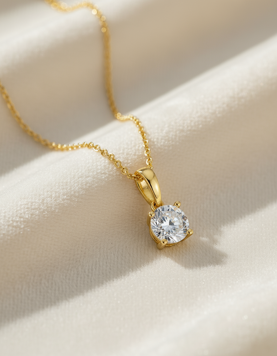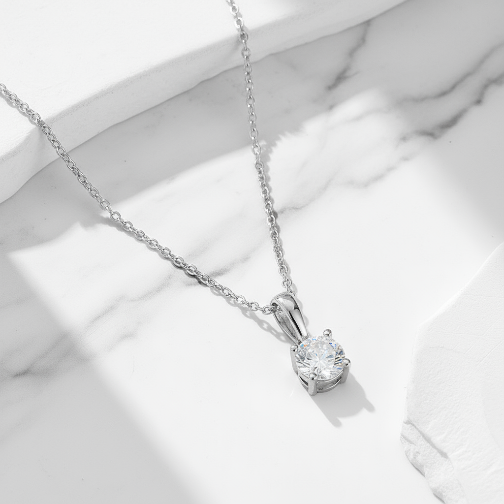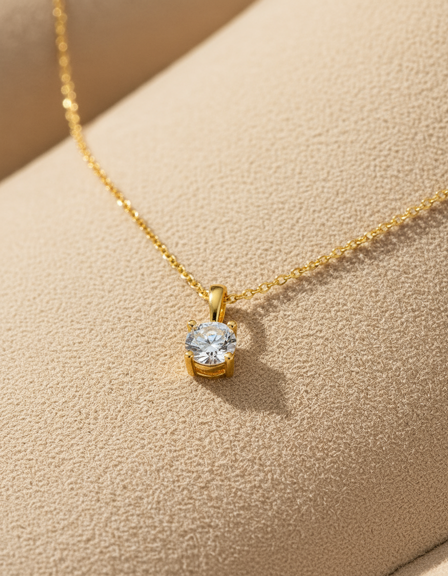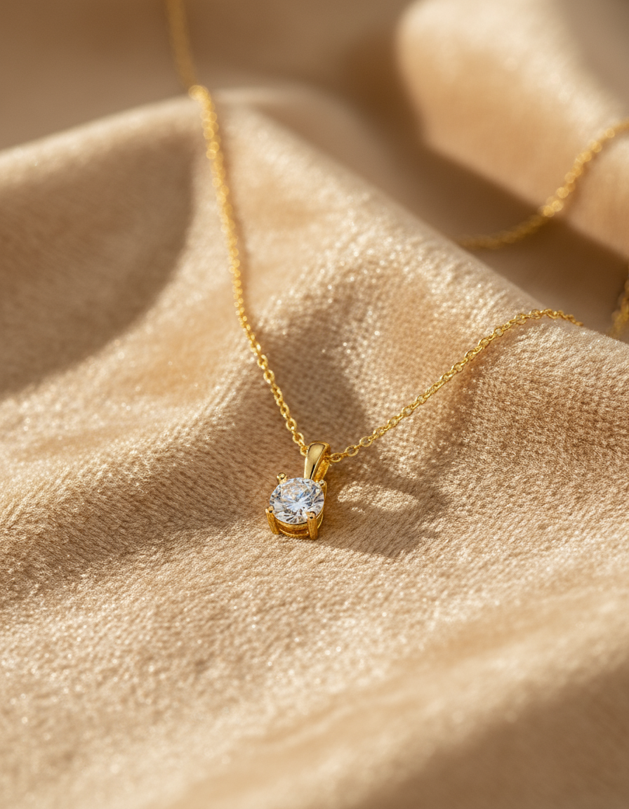 A delicate necklace featuring a brilliant-cut crystal for timeless, refined sparkle. Available in silver or gold.