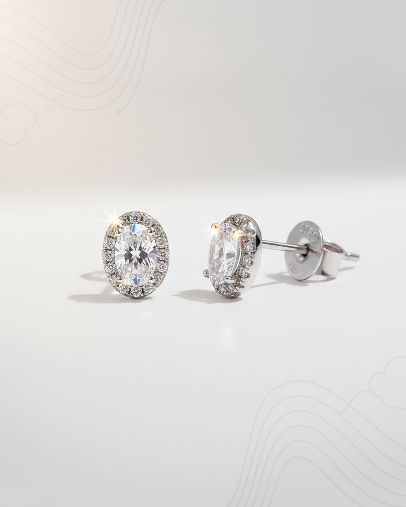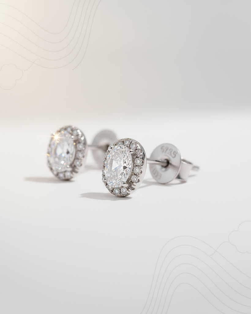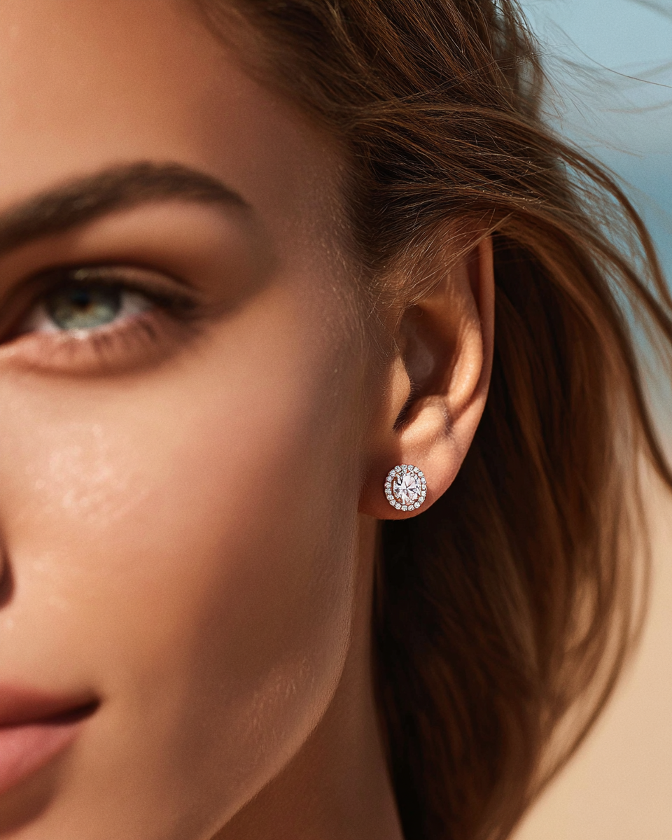 Timeless elegance made to dazzle from every angle. The Edirios studs feature a radiant center stone encircled by a delicate halo of brilliance, set in 925 sterling silver. Available in a curated palette of stunning hues, they offer a refined glow that elevates any look effortlessly.