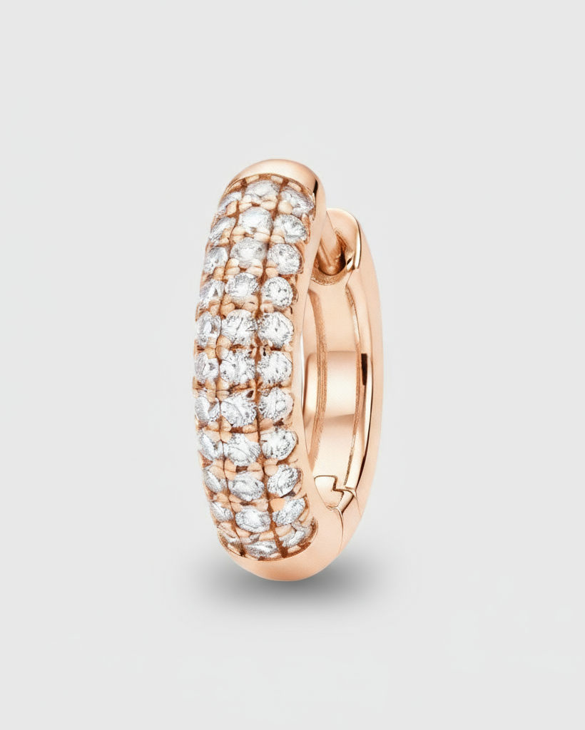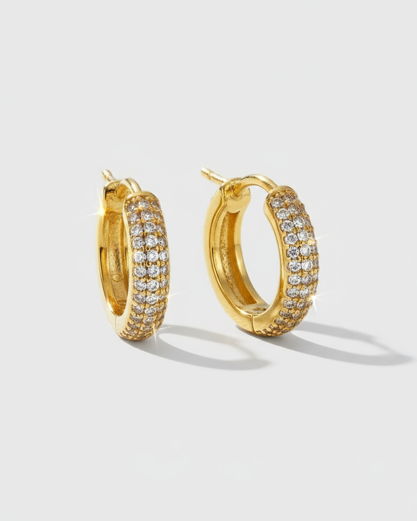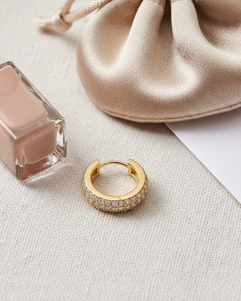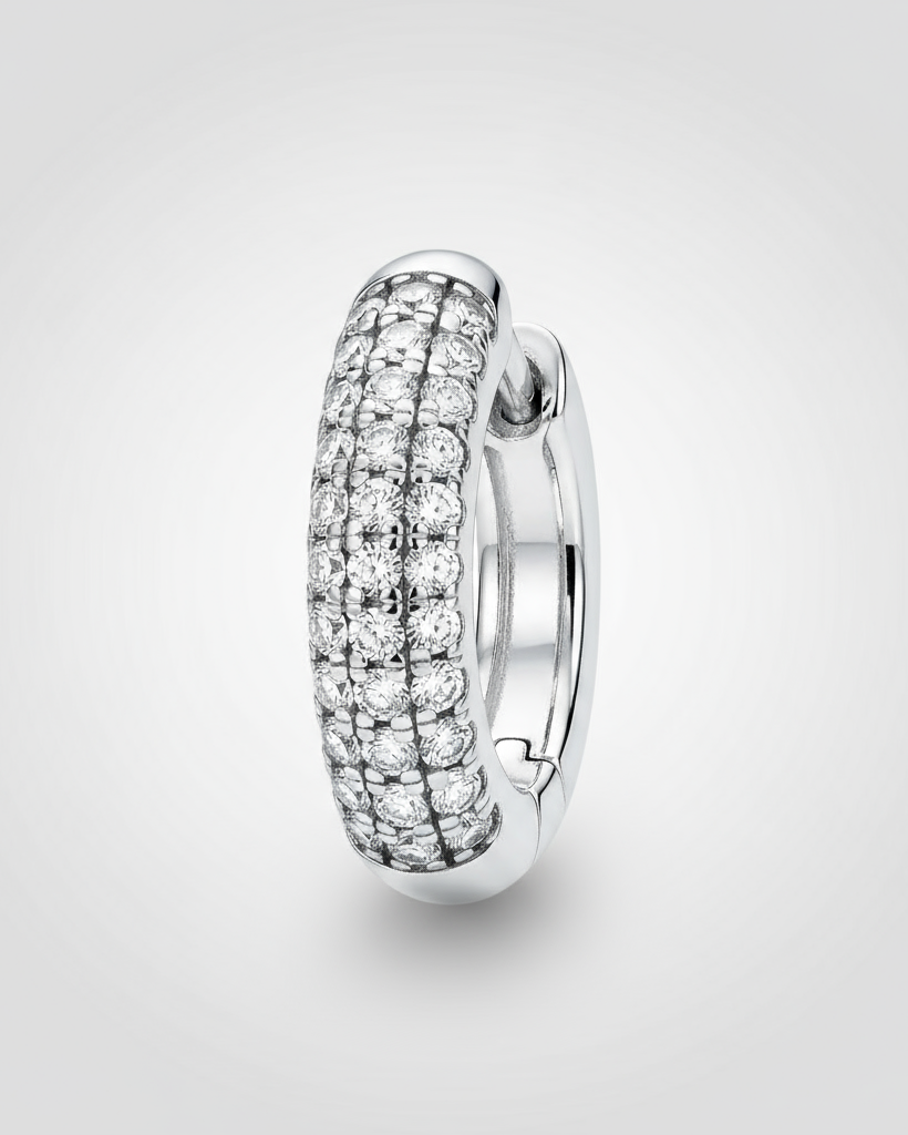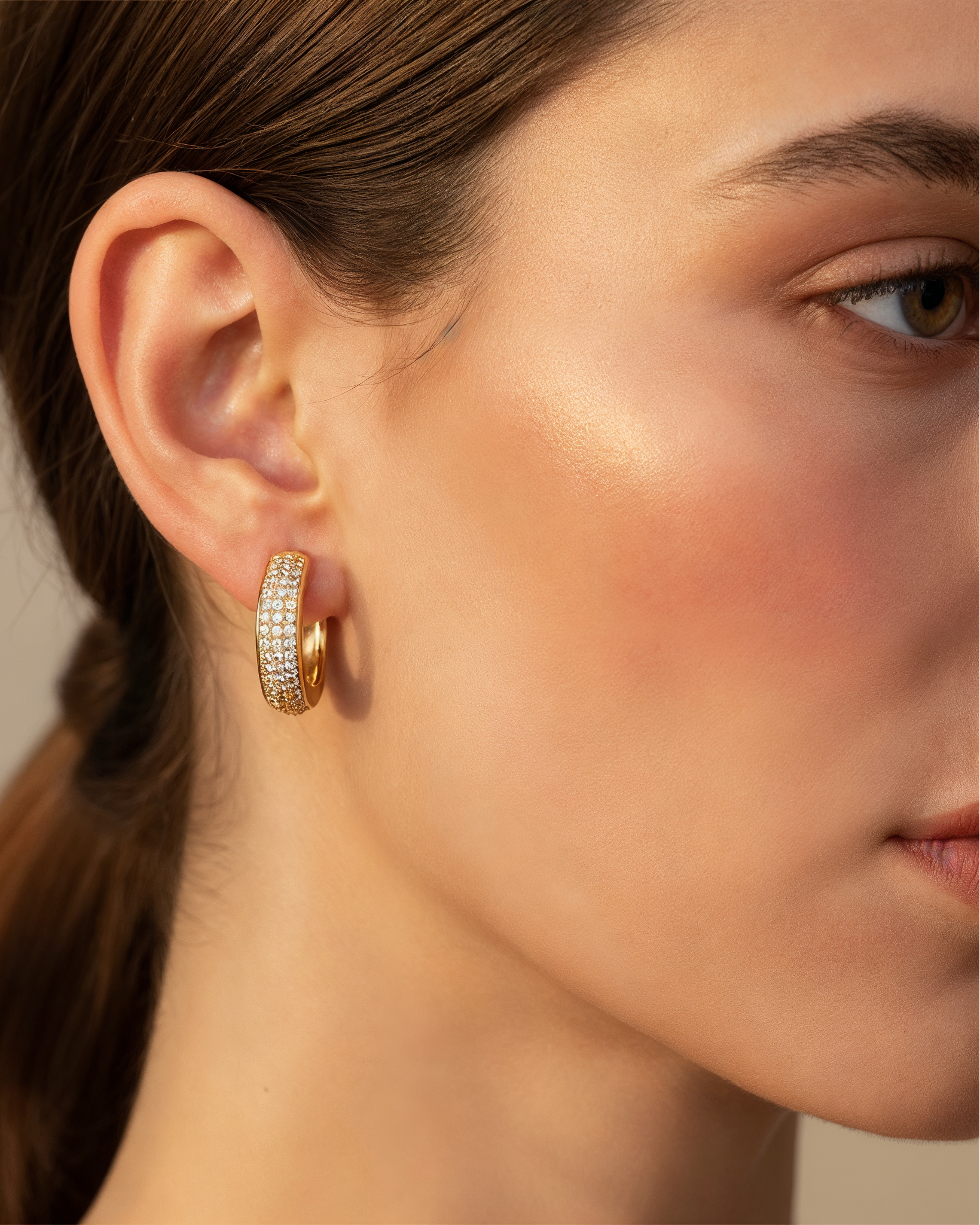Paved with rows of sparkling zirconia, Éclat captures the essence of refined brilliance. A modern take on the classic hoop, with polished finish and radiant presence — made for those who know that true luxury lives in the details.