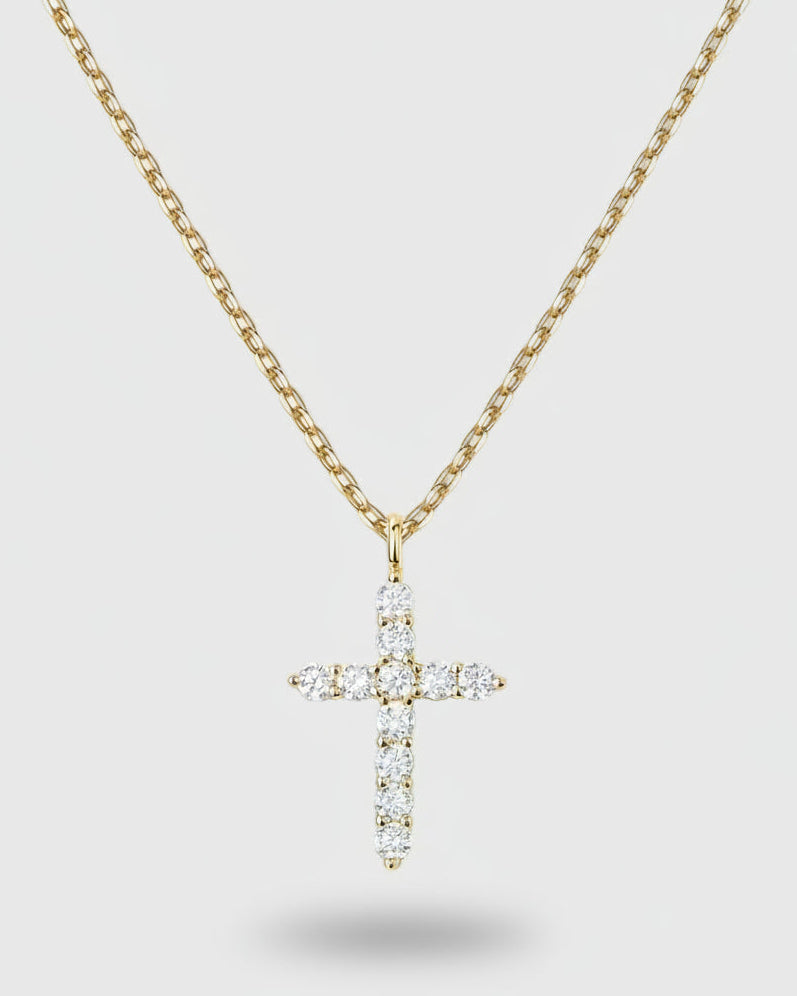 Sancta necklace embodies timeless faith with modern elegance. Its radiant stones and golden glow create a symbol of grace and strength, perfect for those who carry light wherever they go.