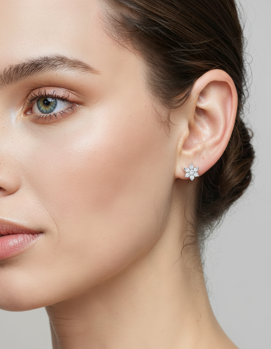 Delicate elegance in every petal. These floral stud earrings feature sparkling zirconia stones arranged in a graceful bloom, offering timeless charm and understated sophistication for everyday wear or special moments.